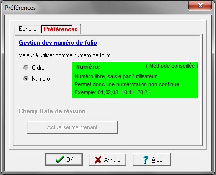 Dialogue Préférence: Choix de la gestion des numéros de folio
