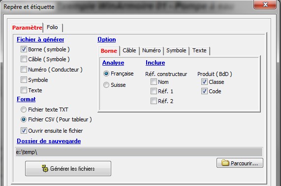 Avec le dialogue Repère et étiquette, il est possible d'exporter des fichiers TXT ou CSV, pour récupérer ensuite les repères de son choix,