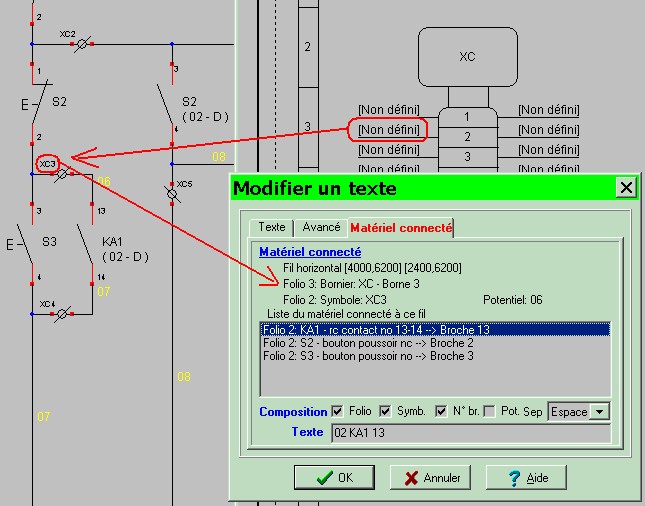 Ici : 02 KA1 13, soit Folio 2, symbole KA1, broche 13.Voir