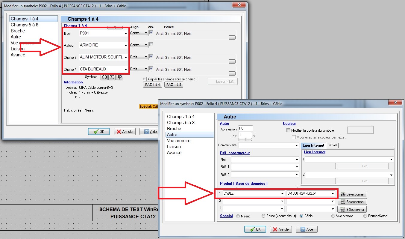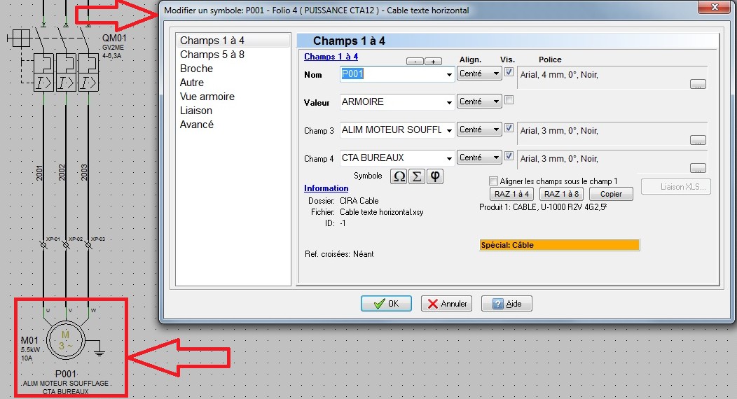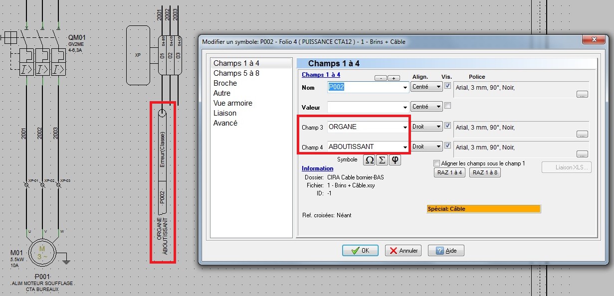 Le symbole est marqué comme câble ( champ spécial = Câble ).