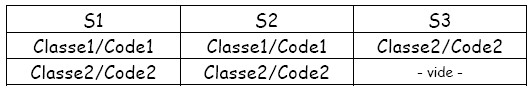 S1 et S2 ont 2 produits: Classe1/Code1 et Classe2/Code2