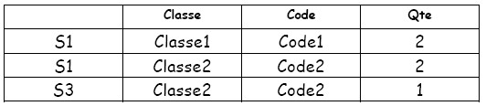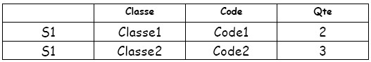 alors qu'il y à 2 produits Classe1/Code1 et 3 produits Classe2/Code2.
