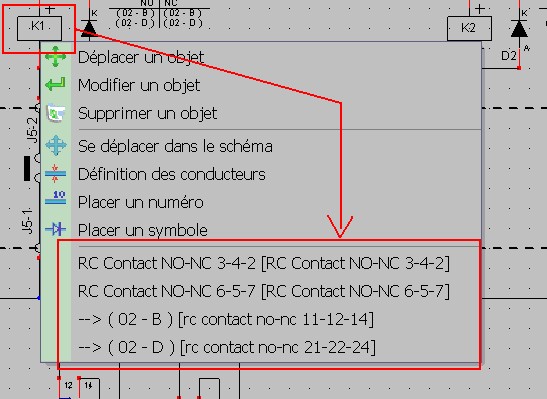 Si il y a un symbole maitre dessous la souris, ce menu contextuel présentera alors, en plus, la liste des esclaves de ce maitre. Ce qui permet alors d'aller rapidement au folio de l'esclave choisi.