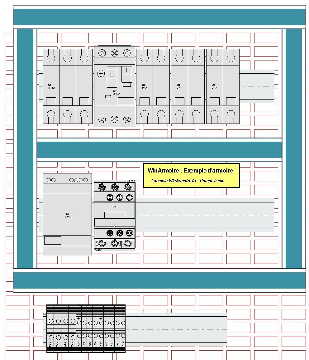 Les symboles " vue armoire " sont ensuite placés sur les rails.