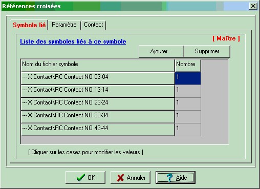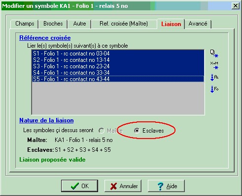 la définition des liaisons se fait toujours à partir du symbole maître: Les contacts sont ajoutés à la bobine, et non pas l'inverse.
