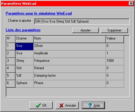 Une définition correcte des paramètres dans ce dialogue permet ensuite, lors de la saisie du schéma dans WINSCHEM, de n' avoir à rentrer que les valeurs numériques des différents paramètres.