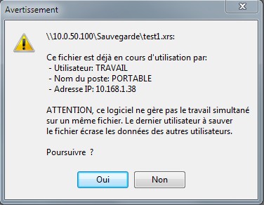 - Si un autre utilisateur ouvre l'armoire WAVU, le logiciel détecte le fichier ~WAVU et donc l'avertissement est affiché.
