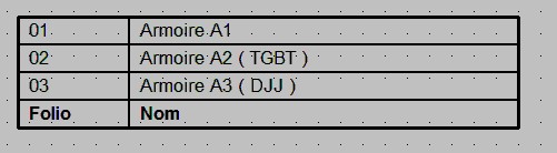 Permet de générer un tableau de la liste des folios de l'armoire.