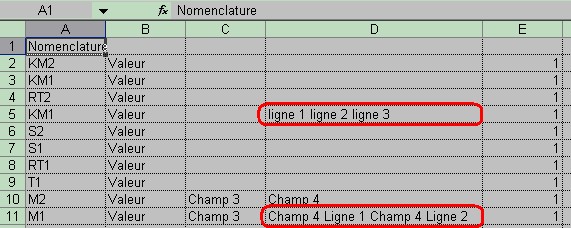 plusieurs lignes, ces lignes seront regroupées ( concaténées ) en une seule ligne ( donc une seul case après exportation ).