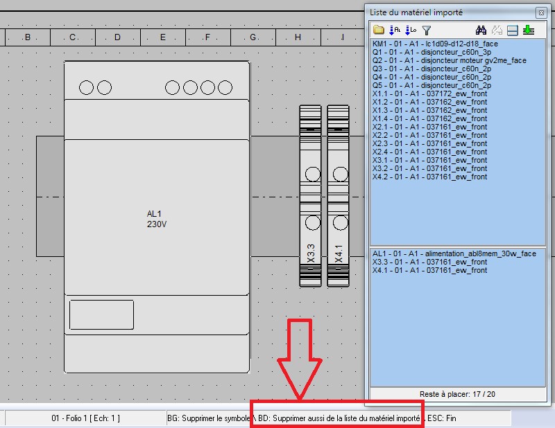 Permet de supprimer ( définitivement ) les vues armoires ( symboles ) sélectionnées de la liste du matériel importé. Cela peut servir pour par exemple réaliser des " modèles " d'armoire personnalisés, à
