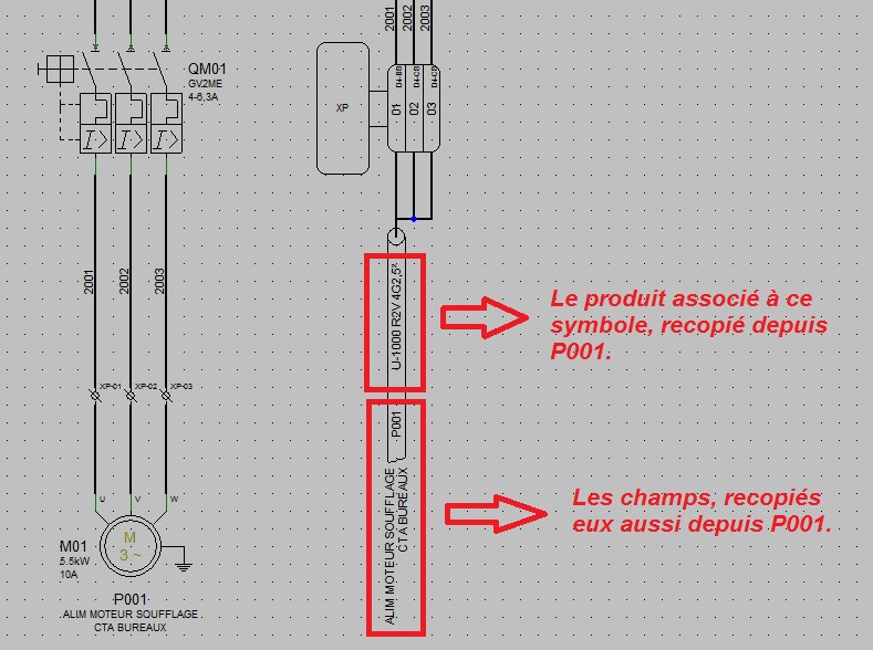 Dialogne Modifier un symbole / Onglet Champs 1 à 4 / Copier
