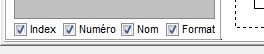 En bas de cette liste: Index / Numéro / Nom / Format : Permet de choisir les informations visibles de chaque folio dans la liste:Index = Index du folio ( 1,