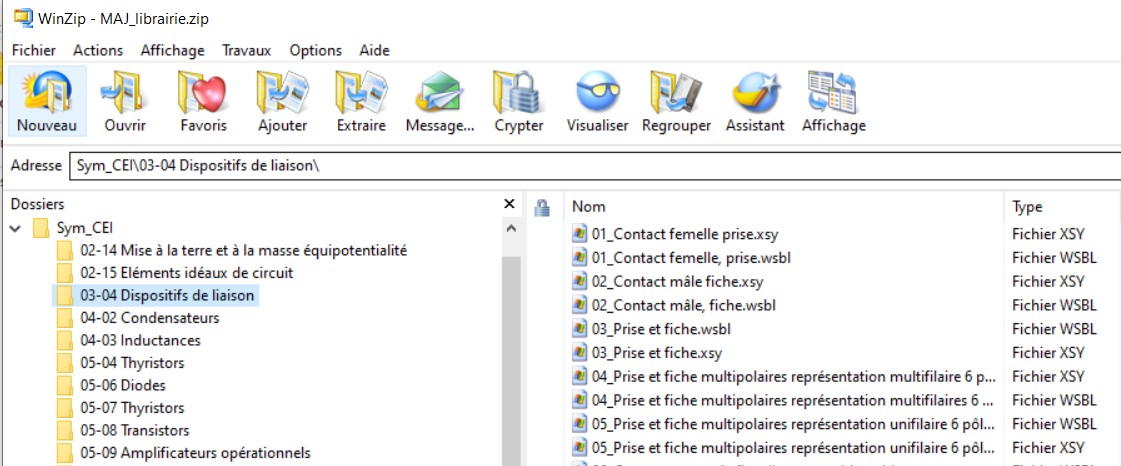 Exemple : Ce fichier ZIP contient 1 dossier sym_CEI, qui contient les sous dossiers avec les symboles.