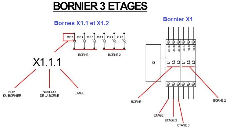 Borne : Nombre des bornes du borniers, et nombre d'étages pour information.