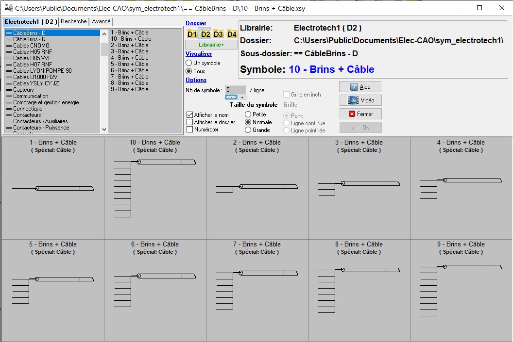 - Câbles ( Symbole Câble ) : Câbles dont le champ Spécial = Câble. Ces symboles sont donc présents dans la librairie.