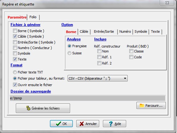 Avec le dialogue Repère et étiquette, il est possible d'exporter des fichiers TXT ou CSV, pour récupérer ensuite les repères de son choix, pour imprimer des étiquettes.