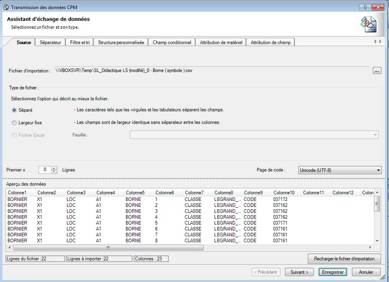 Phoenix Contact(tm) / Clip Project Marking : Importation du fichier CSV : Choix du fichier CSV