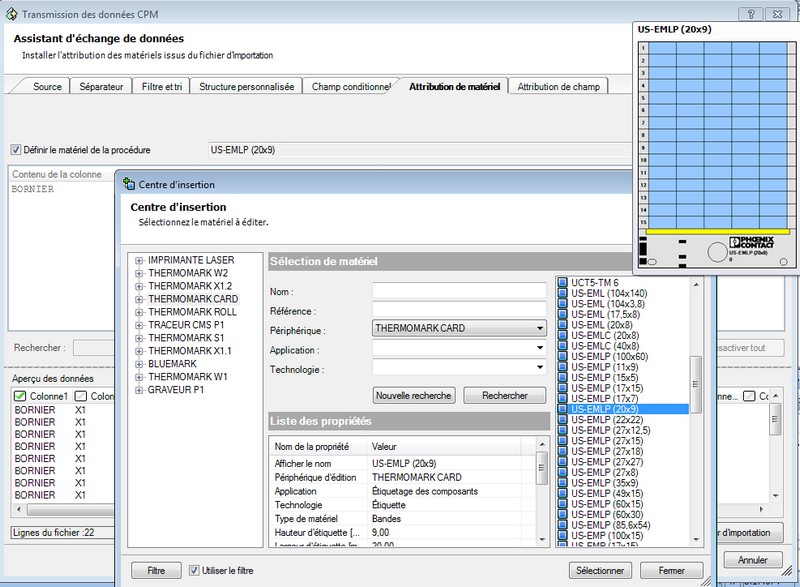Phoenix Contact(tm) / Clip Project Marking : Importation du fichier CSV : Choix des étiquettes