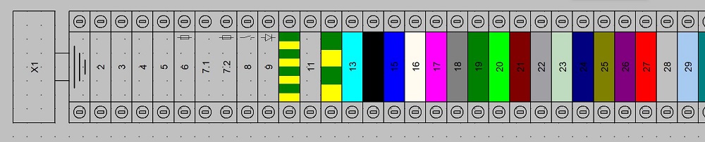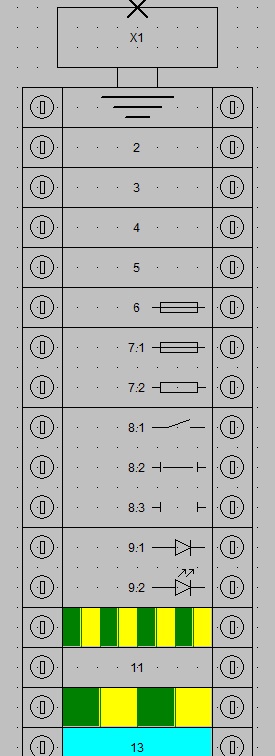 Exemple 2 : Dessins terre, fusible, diode, led, sectionnable, terre vert/jaune ajoutés sur des bornes.