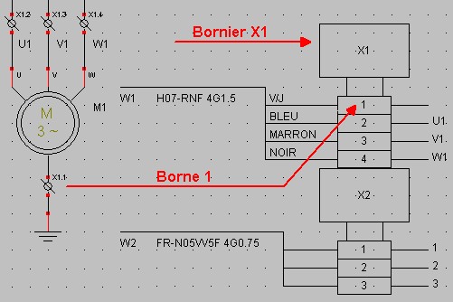 Les bornes X1.1, X1.2, X1.3 seront sur le bornier X1 ( généré automatiquement ).