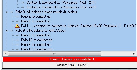 En cas d'erreurs, elles sont affichées dans l'arborescence: