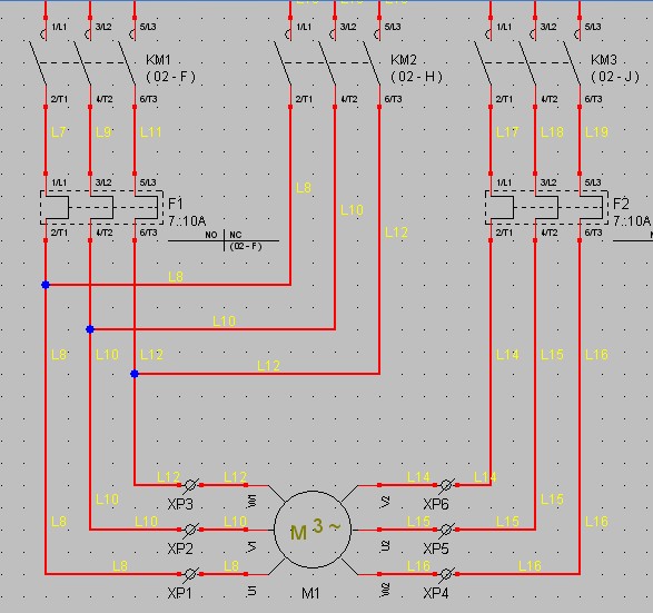 M1 est placé vers l’extérieur et F1 est placé vers l’intérieur de la platine car F1-2/T1 est plus proche de la borne XP1 sur le schéma que KM2-2/T1. Pour privilégier KM2 au détriment de F1 il faut placer la borne XP1 de manière à la rapprocher de KM2.