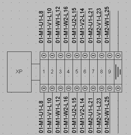 Si sur le schéma suivant on génère le bornier XC avec le filtre M,S,H,Pr,EV on obtient :