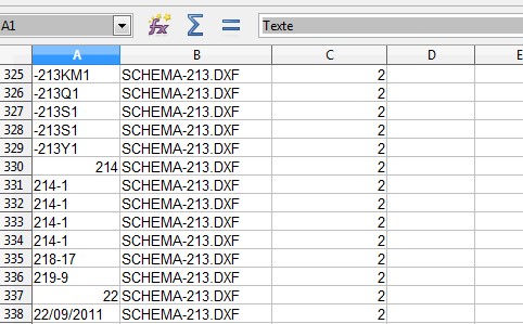 Chaque texte sera sur une ligne, avec 3 colonnes : Texte / Fichier DXF / Folio