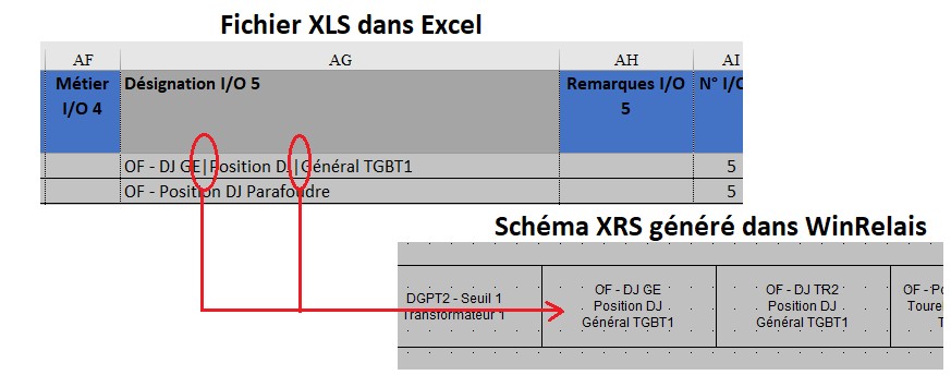 SD : Sur Demande : Liaison XLS sur demande & Lecture du fichier XLS pour extraction des données à placer dans le schéma.