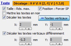 Le bouton +Texte permet l'accès au choix " Décaler les textes verticaux différemment " et aux valeurs X & Y de ce décalage des textes verticaux.