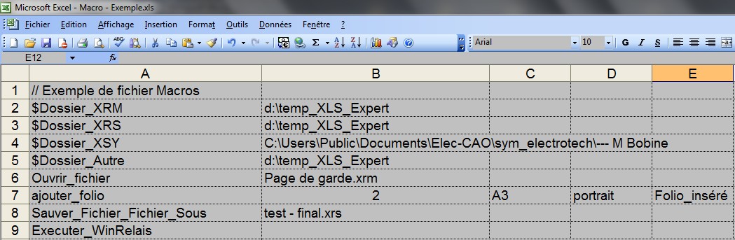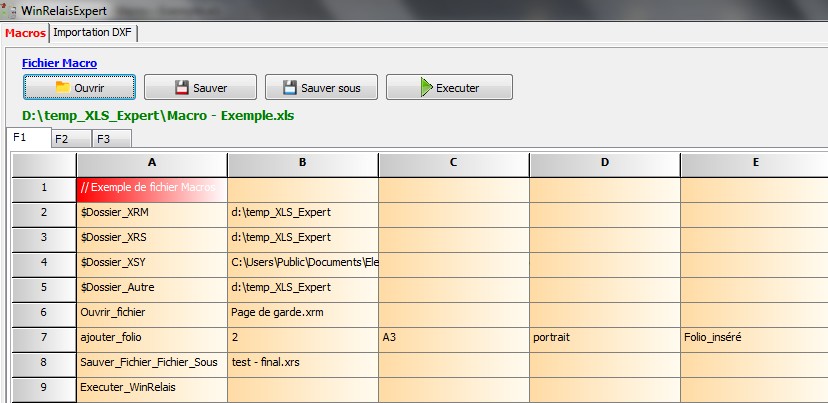 Une ligne = 1 macro, avec ses paramètres, ou pas.